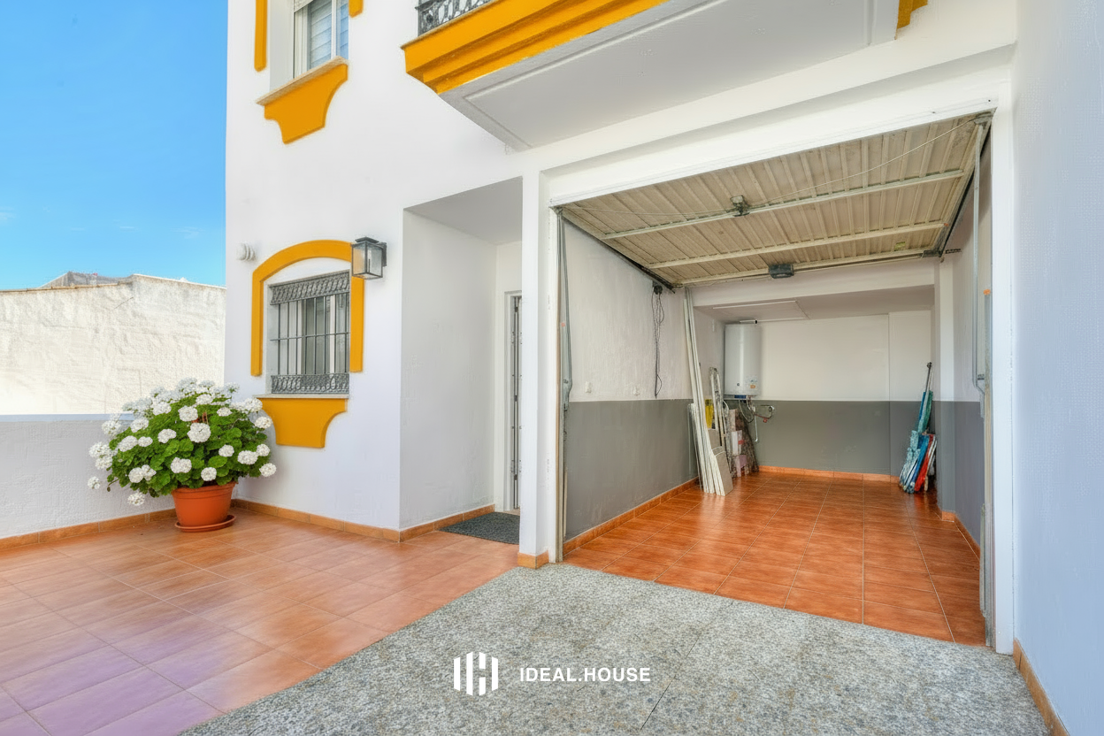 Al llegar, un acogedor patio de 13 m² te da la bienvenida. Desde aquí puedes acceder al garaje de 12 m² para tu coche o entrar por la puerta peatonal directamente al corazón de la casa.