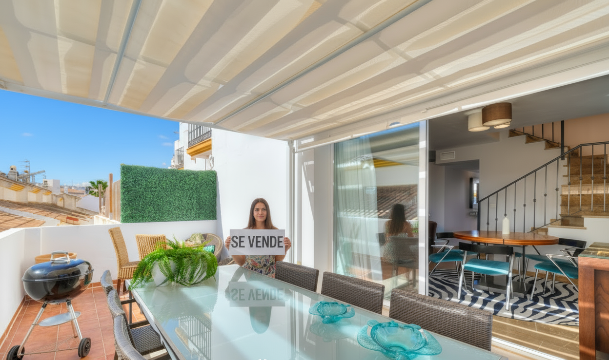 Terraza🏡Casa en venta en Manilva: Tu refugio mediterráneo